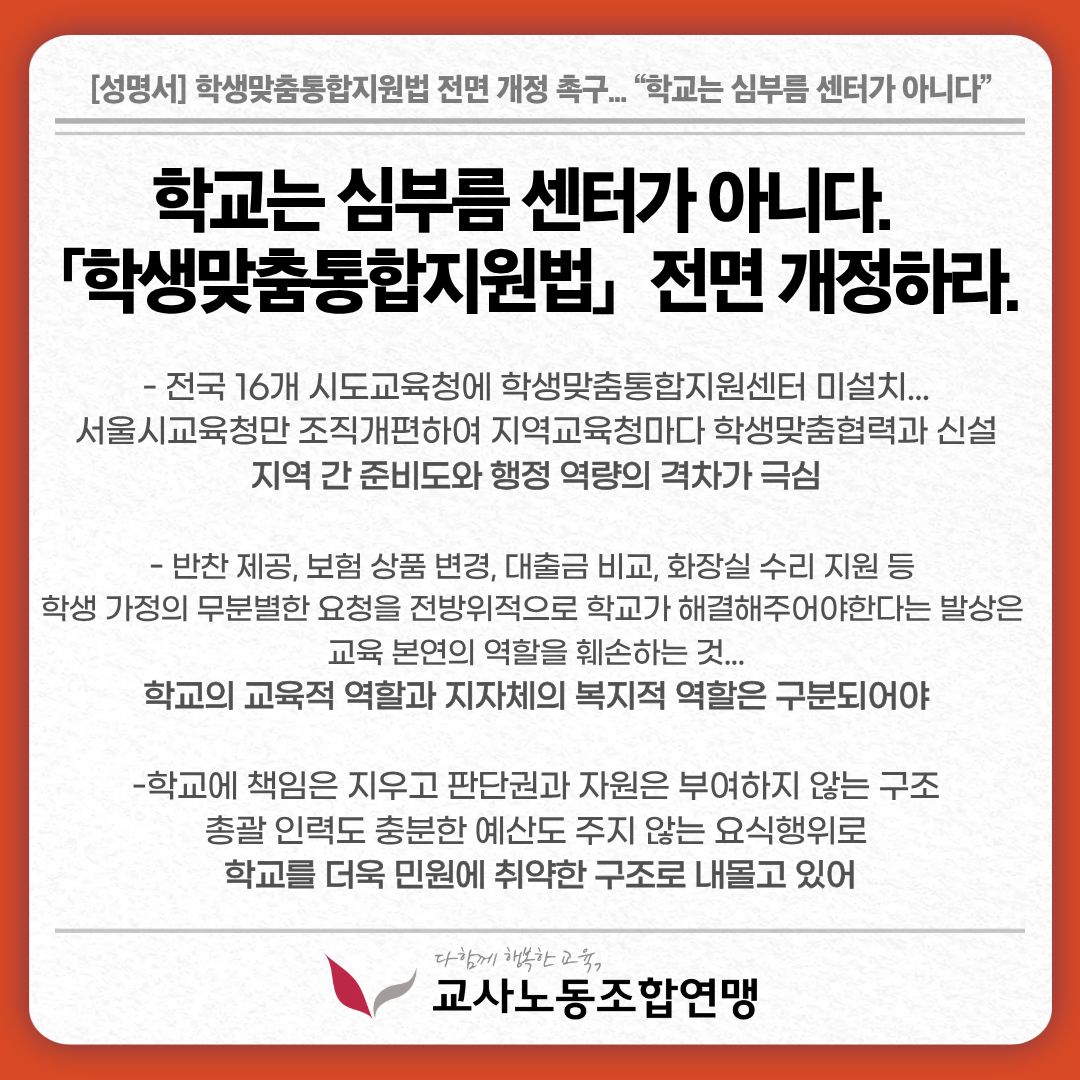 학생맞춤통합지원법 전면 개정 촉구... “학교는 심부름 센터가 아니다”(2025.12.11.)